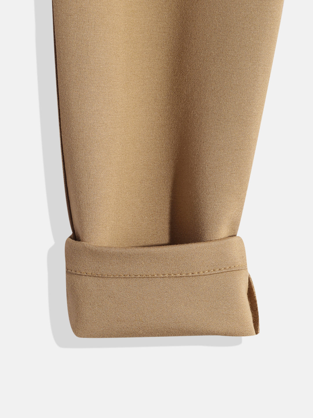 CAVIO Lycra Blend Solid Regular Fit Trousers With Belt - Khaki
