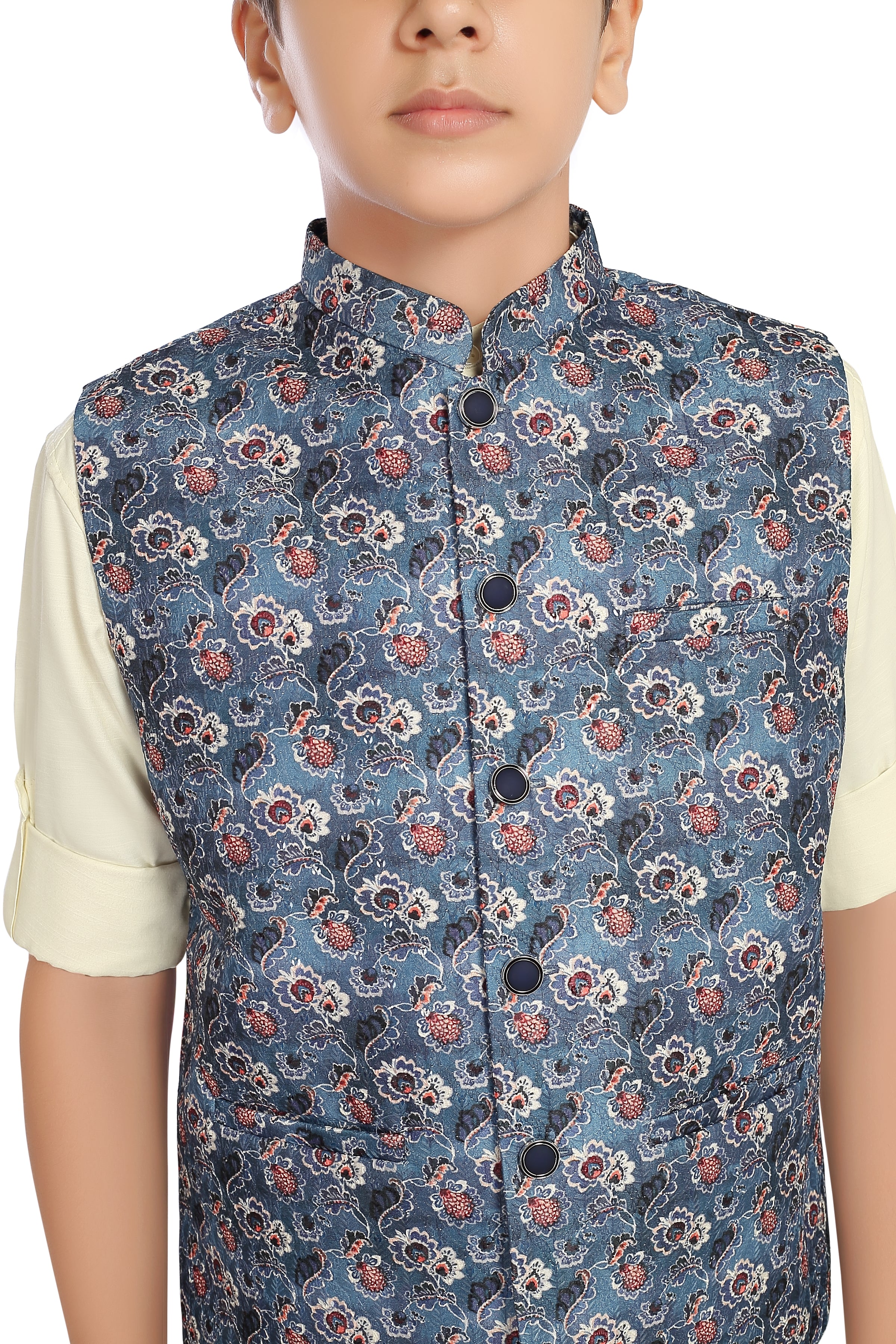 CHARCHIT Boys Printed Nehru Jacket and Shirt - Blue